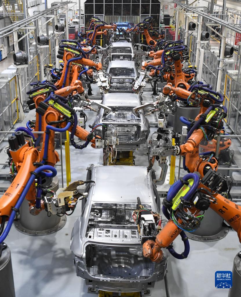 在廣州市番禺區的廣汽埃安新能源汽車(chē)股份有限公司焊裝車(chē)間,機器人手臂在焊接作業(yè)中(2月24日攝)。