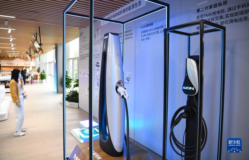 在廣汽埃安新能源汽車(chē)股份有限公司現場(chǎng)展示的超充樁和家庭充電樁(2月24日攝)。