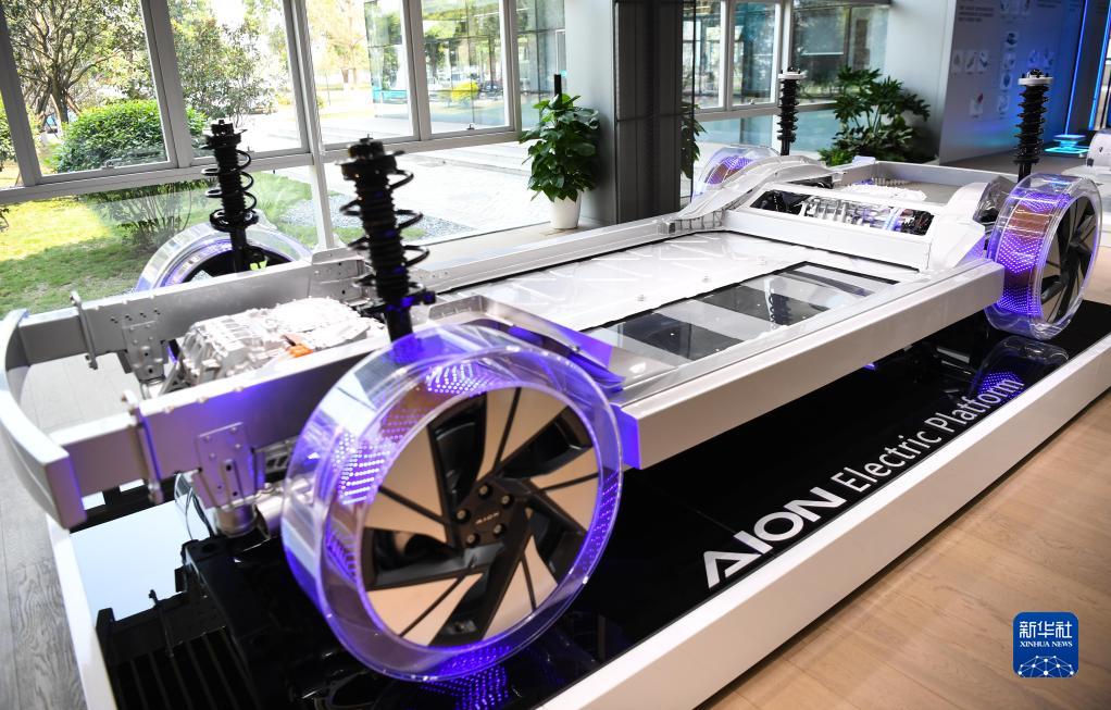 在廣汽埃安新能源汽車(chē)股份有限公司現場(chǎng)展示的純電專(zhuān)屬平臺(2月24日攝)。