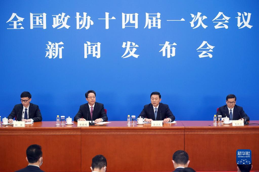 3月3日,全國政協(xié)十四屆一次會(huì )議新聞發(fā)布會(huì )在北京人民大會(huì )堂舉行。大會(huì )新聞發(fā)言人郭衛民向中外媒體介紹本次大會(huì )有關(guān)情況并回答記者提問(wèn)。新華社記者 陳曄華 攝