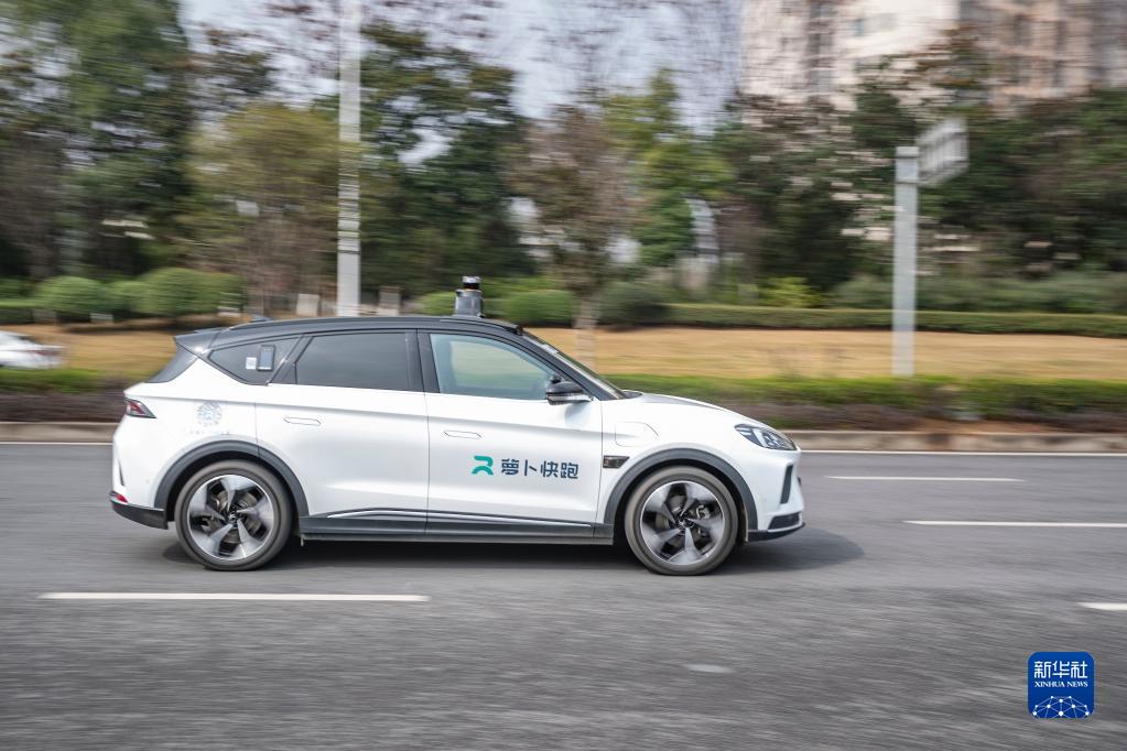 這是3月3日在重慶市永川區拍攝的行駛在城區道路上的百度Apollo自動(dòng)駕駛出行服務(wù)車(chē)。