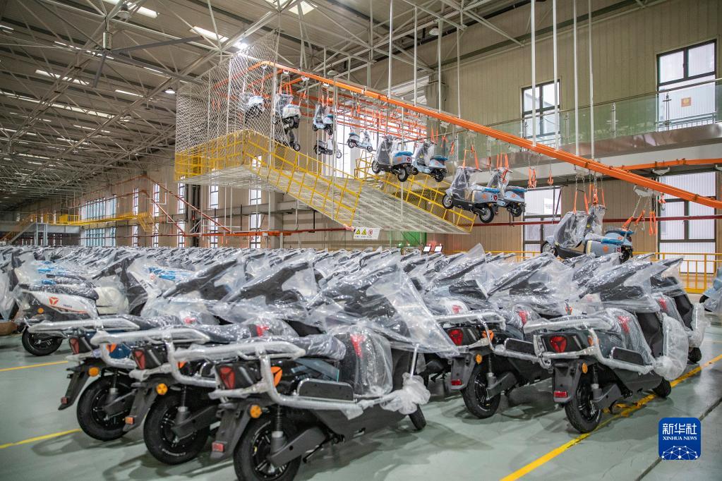 2月22日,在雅迪科技集團重慶永川電動(dòng)車(chē)生產(chǎn)基地,智能化運輸線(xiàn)將成品電動(dòng)車(chē)運往倉庫。