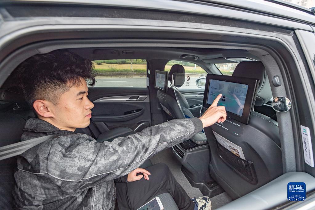 3月3日,在重慶市永川區,乘客搭乘百度Apollo自動(dòng)駕駛出行服務(wù)車(chē)。