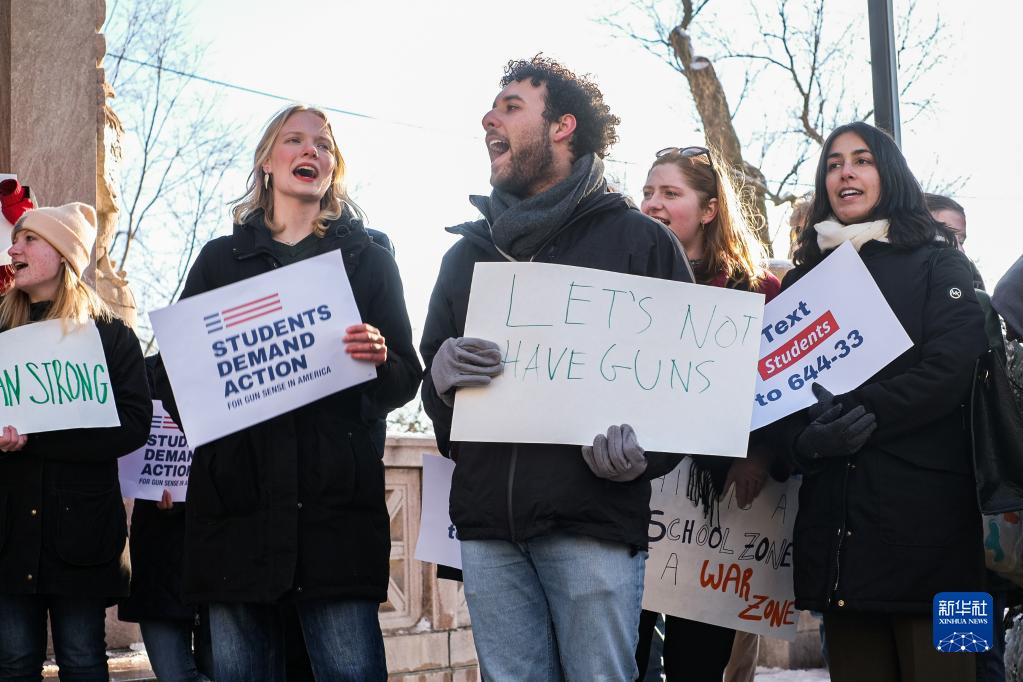 2月24日,在美國馬薩諸塞州波士頓,當地學(xué)生參加反槍支暴力集會(huì ),悼念密歇根州立大學(xué)槍擊事件受害者。