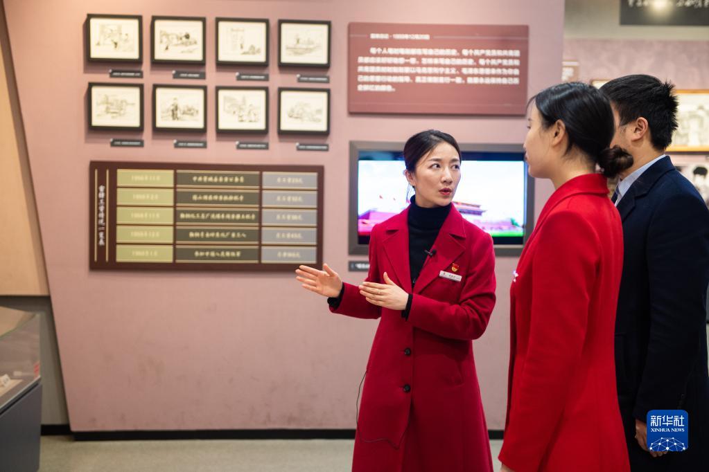 3月1日,在湖南雷鋒紀念館,張璐琪(左)在指導新聘宣講員講解雷鋒生平事跡。