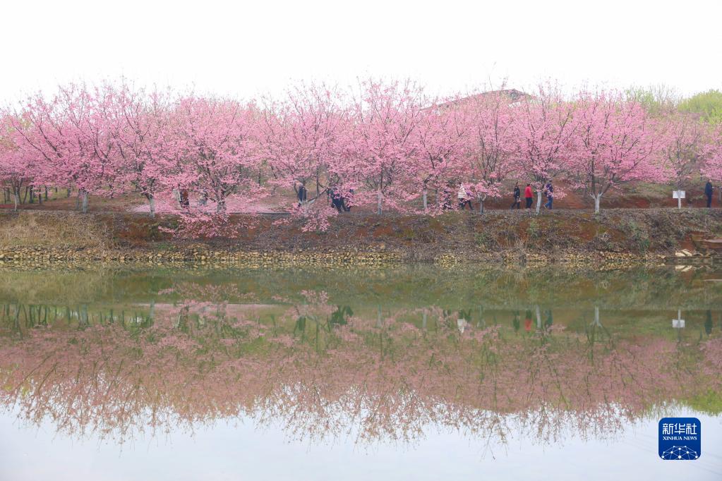 3月4日,游人在常寧市羅橋鎮櫻花園內觀(guān)賞櫻花。