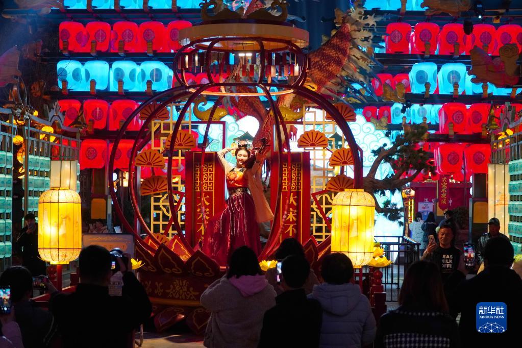 2月27日晚,游客在位于山東省東平縣的大宋不夜城觀(guān)看表演。大宋不夜城是山東省東平縣集古鎮風(fēng)情與宋文化街區于一體的全新旅游項目。大宋不夜城從今年1月7日正式向游客開(kāi)放以來(lái),已吸引游客超過(guò)110萬(wàn)人次,對繁榮夜經(jīng)濟、拉動(dòng)消費起到有效促進(jìn)作用。
