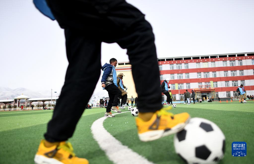 3月1日,在玉樹(shù)州治多縣,吉尕小學(xué)學(xué)生在足球訓練課上。