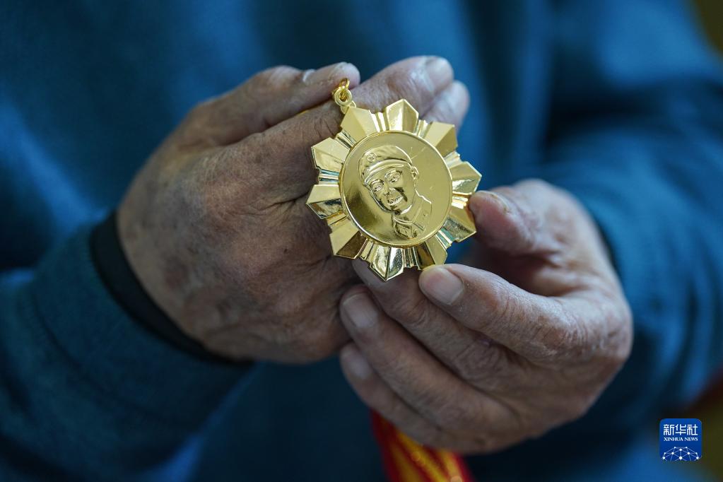 3月4日,“百姓雷鋒”姚恩亮在展示自己獲得的“百姓雷鋒”獎?wù)隆?/p>