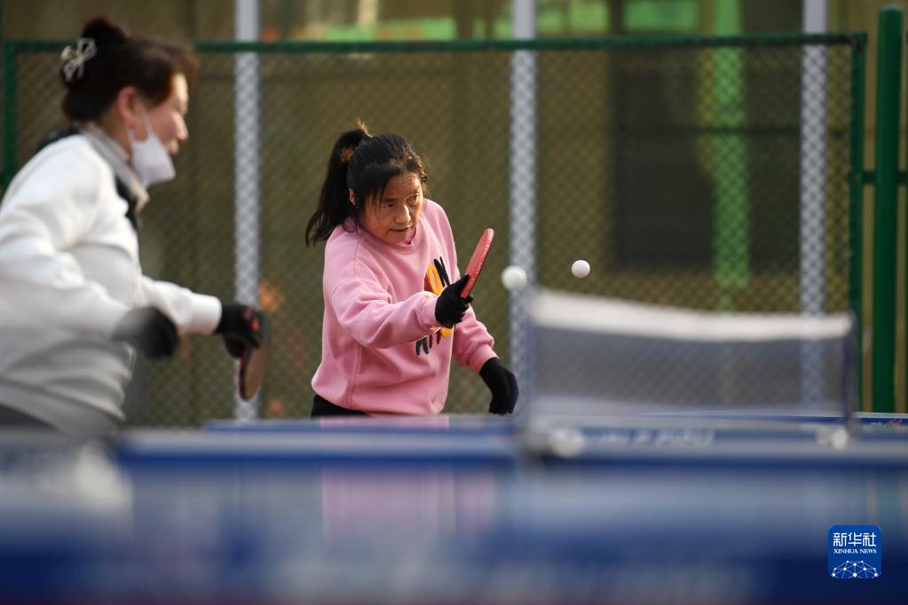 3月3日,市民在甘肅省蘭州市體育公園的室外乒乓球場(chǎng)打球。