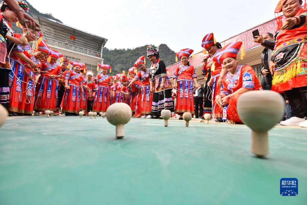 當日,廣西大化瑤族自治縣大化鎮仁良村舉辦“三八”國際婦女節陀螺比賽,壯、瑤、漢等各族婦女歡聚一堂,通過(guò)打陀螺、跳竹竿舞、品長(cháng)桌宴等豐富多彩的民俗體育和文化活動(dòng),迎接節日。