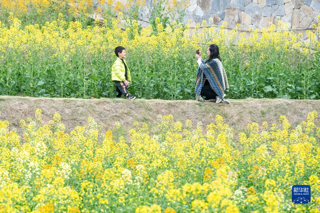 近日,重慶市兩江新區水土高新科技園“兩江田園牧歌”景區內,油菜花競相綻放,吸引人們踏春賞花,感受春日之美。