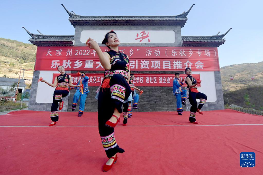 魯麗華在南澗縣樂(lè )秋鄉參加大理州“三下鄉”表演(2022年12月24日攝)。