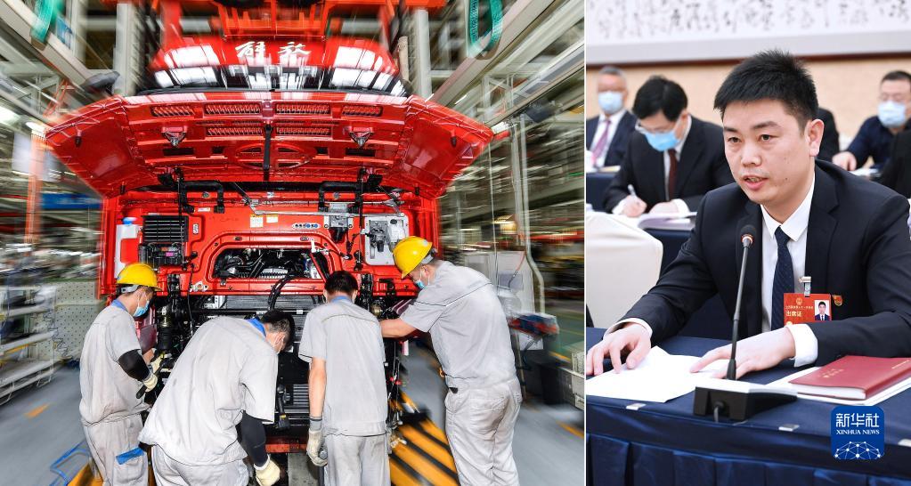 右圖:全國人大代表楊永修是中國一汽研發(fā)總院的一名操作工。之前在攻克一項汽車(chē)發(fā)動(dòng)機加工核心工藝時(shí),他和團隊要實(shí)現0.015毫米的加工精度,反復嘗試后終于在浩如煙海的代碼中總結出精密參數,實(shí)現技術(shù)突破。楊永修說(shuō):“向技術(shù)無(wú)人區挺進(jìn),只要發(fā)揚精益求精、專(zhuān)注執著(zhù)的工匠精神,就會(huì )迎來(lái)海闊天空?!保ㄐ氯A社記者 熊爭艷 攝)