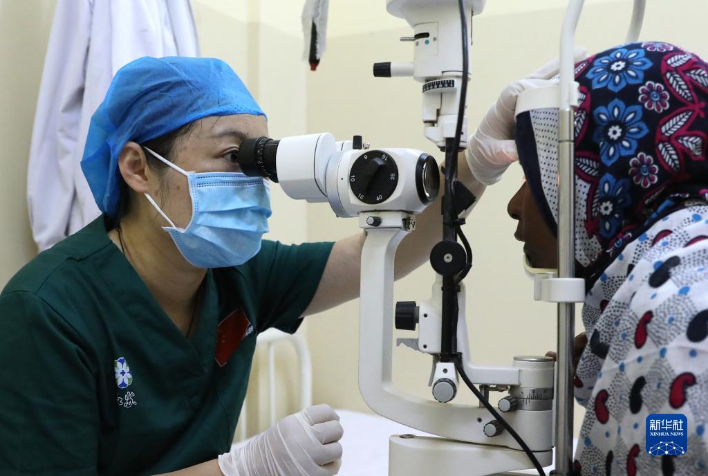 2月23日,在坦桑尼亞桑給巴爾島納茲莫加醫院,董莉莉(左)為穆欣進(jìn)行術(shù)前檢查。
