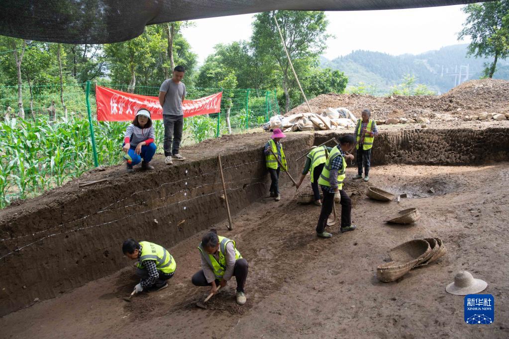 2022年5月24日,在位于重慶市涪陵區的小田溪墓群考古發(fā)掘現場(chǎng),燕妮(后左)在指揮考古發(fā)掘現場(chǎng)作業(yè)。