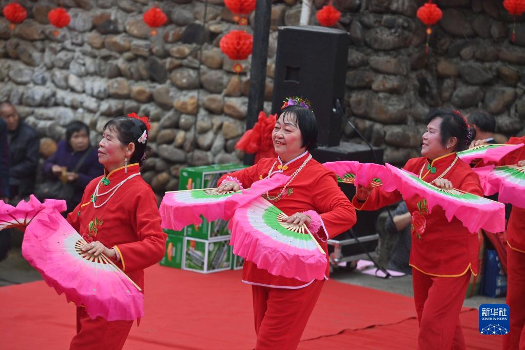 3月7日是廣西柳州市融安縣大將鎮龍妙村農歷二月十六傳統會(huì )期,龍妙村的婦女在表演地方特色的劇種“彩調”。