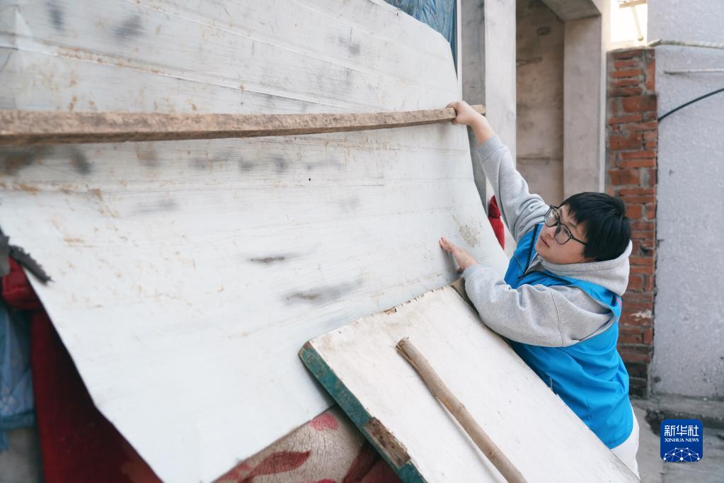 2月22日,在北京市峪口鎮西樊各莊村,王巖峰幫助一戶(hù)殘疾人家庭整理院子。
