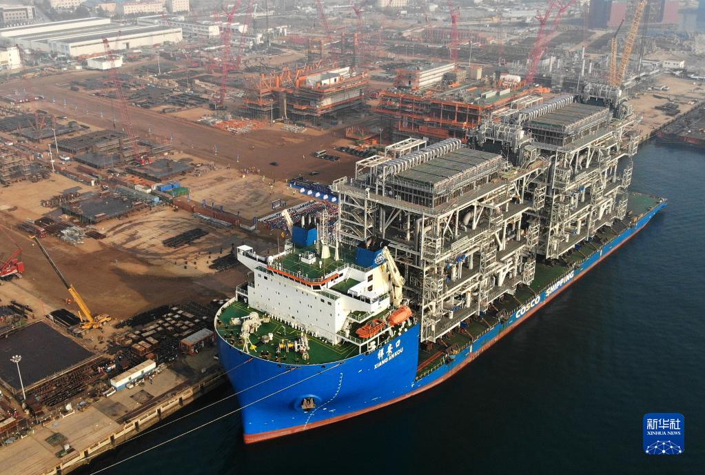 當日,由中國海洋石油工程股份有限公司承建的又一超大型國際能源裝備——加拿大LNG(液化天然氣)項目的最后兩個(gè)核心模塊在青島場(chǎng)地完工裝船,至此,該項目中由我國承建的模塊全部順利交付。