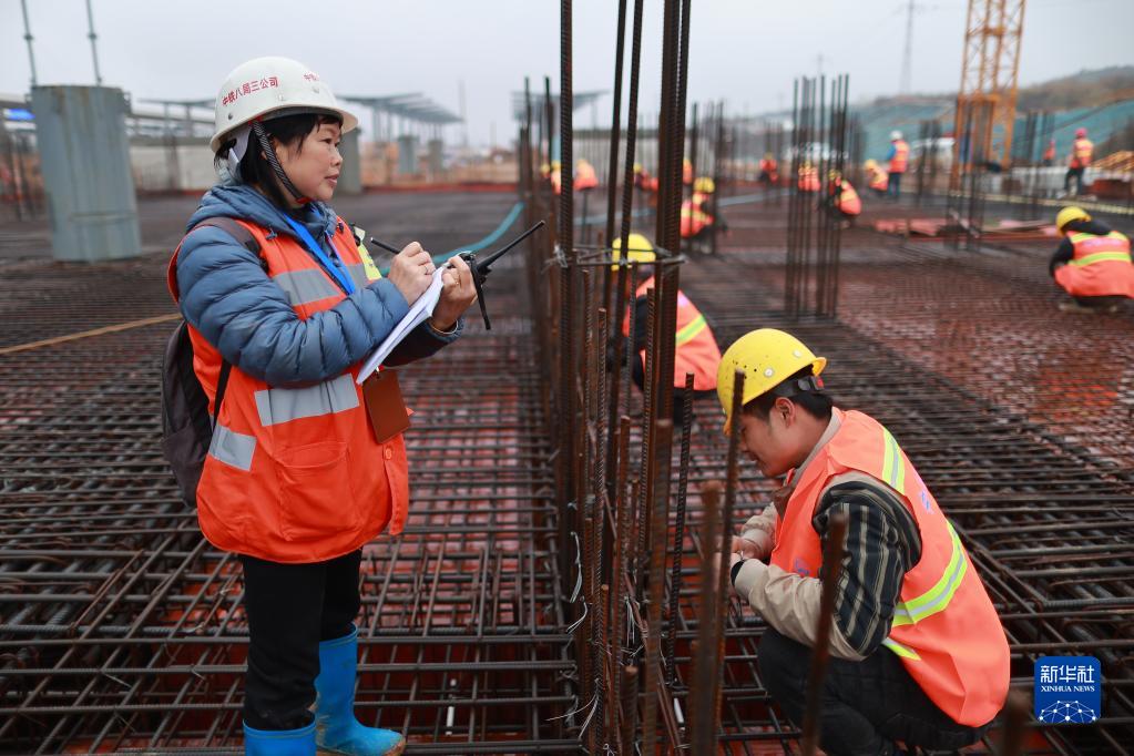 3月7日,中鐵八局女職工劉獻英(左一)在施工現場(chǎng)登記人員信息。