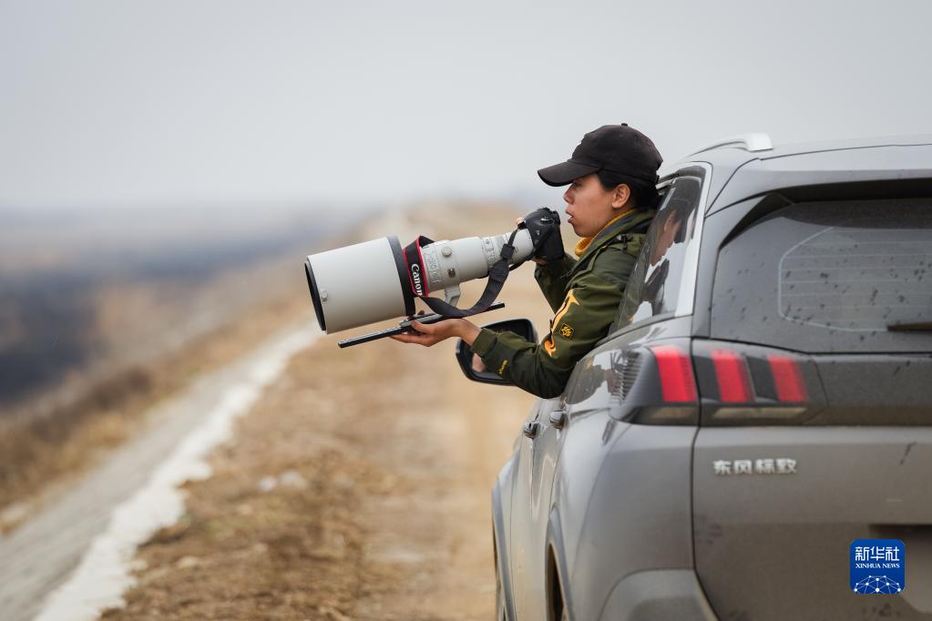 譚文卓探出車(chē)窗拍攝鳥(niǎo)類(lèi)(2月16日攝)。