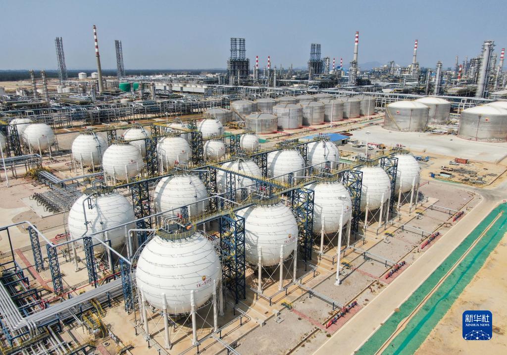 3月7日拍攝的中國石油廣東石化煉化一體化項目的存儲裝置(無(wú)人機照片)。