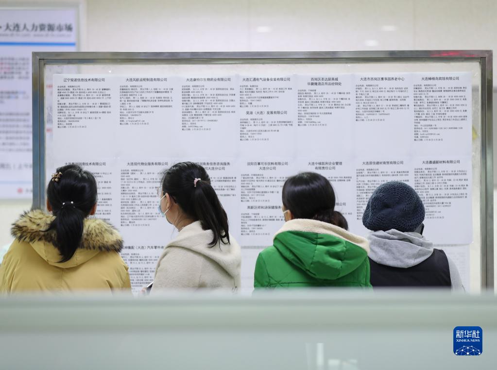 3月8日,求職者在大連市人力資源市場(chǎng)查看招聘信息。