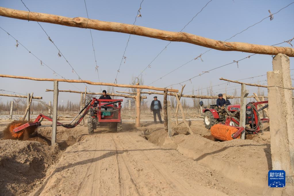 吐魯番葡萄在國內外享有盛譽(yù)。每年冬天,農民都會(huì )將葡萄藤掩埋在地下,保暖越冬,來(lái)年開(kāi)春,再挖出搭上葡萄架。得益于近年來(lái)吐魯番市葡萄架式改造工作,越來(lái)越多的農民選擇用機械方式開(kāi)墩,不僅節約了人工成本,也提升了開(kāi)墩效率。