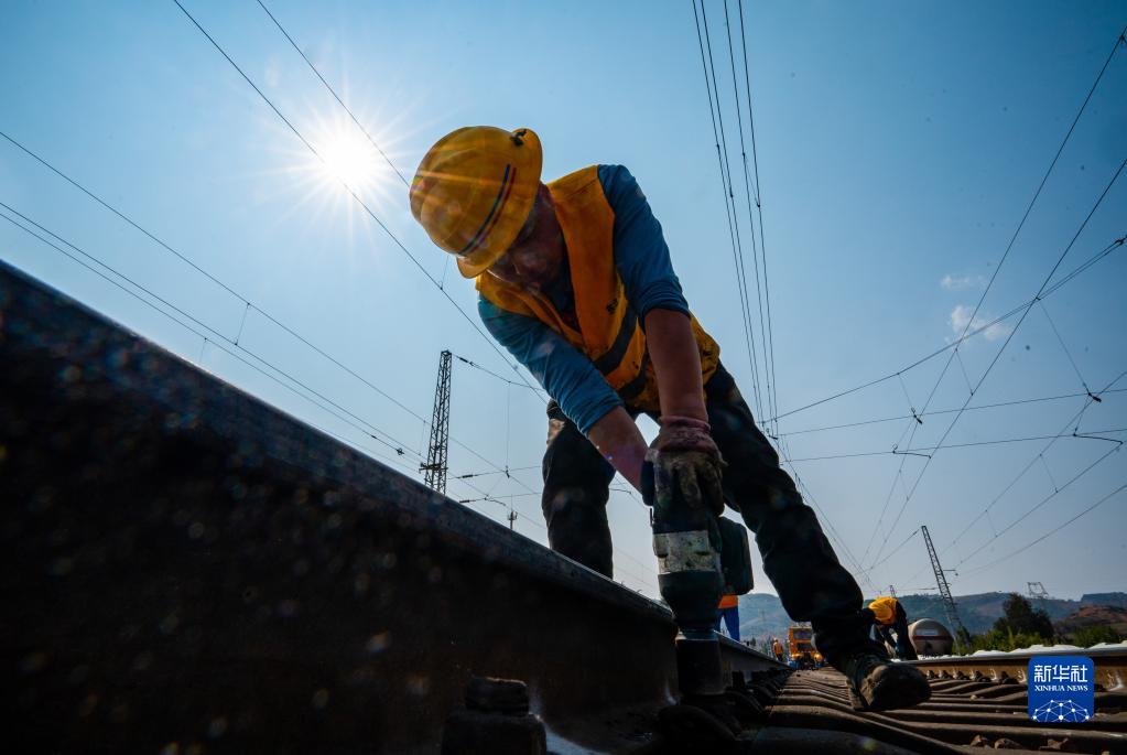 作業(yè)人員在拆除軌枕扣件(3月8日攝)。