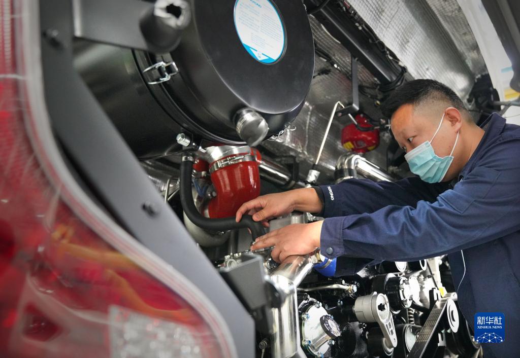 3月8日,工作人員在宇通新能源廠(chǎng)區高端及海外承裝車(chē)間進(jìn)行發(fā)動(dòng)機檢測。