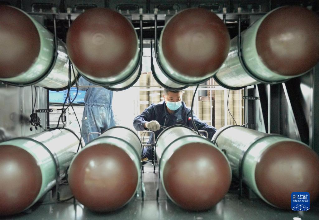 3月8日,工作人員在宇通新能源廠(chǎng)區高端及海外承裝車(chē)間裝配車(chē)輛天然氣管路。