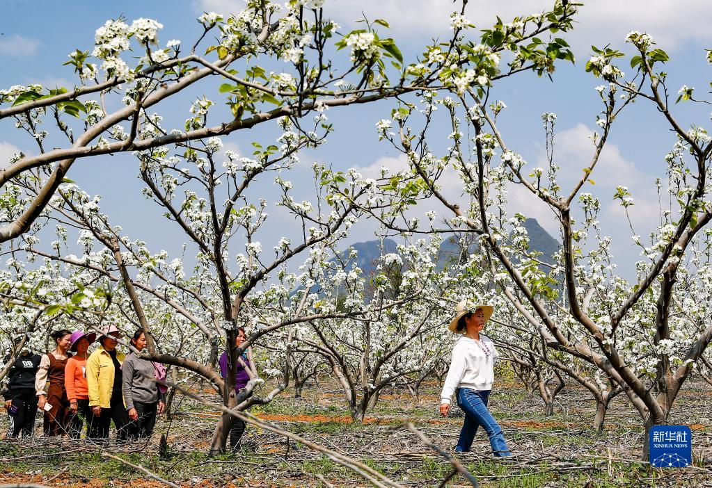 近日,廣西柳州市融安縣潭頭鄉梨花盛開(kāi),吸引游人前來(lái)游玩拍照。