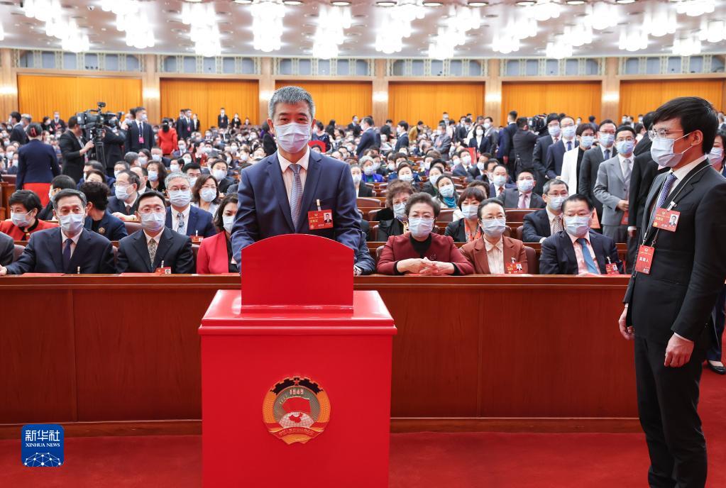 3月10日,全國政協(xié)十四屆一次會(huì )議在北京人民大會(huì )堂舉行第三次全體會(huì )議。這是委員在投票。