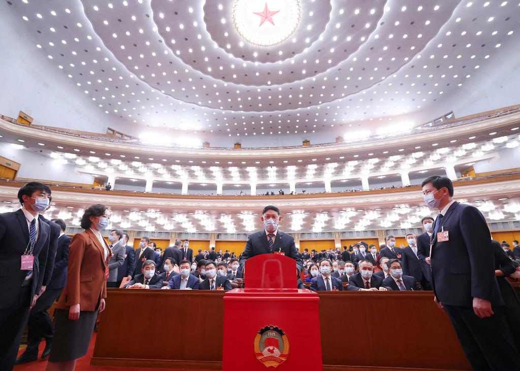 3月10日,全國政協(xié)十四屆一次會(huì )議在北京人民大會(huì )堂舉行第三次全體會(huì )議。這是委員在投票。