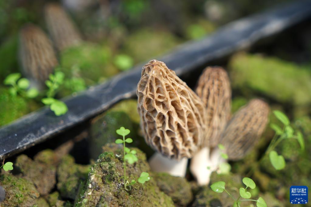 這是在四川省成都市大邑縣新場(chǎng)古鎮燈籠社區一處種植大棚里拍攝的羊肚菌(3月8日攝)。