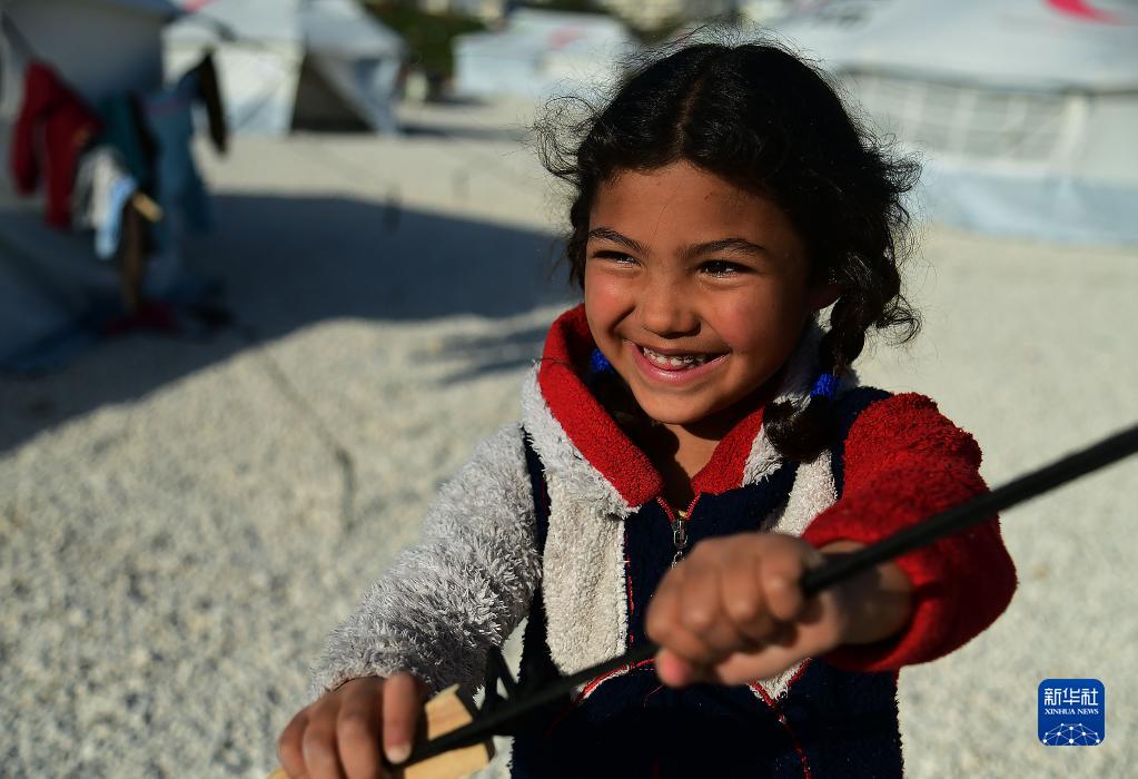 這是3月9日在敘利亞杰卜萊的一處災民安置營(yíng)內拍攝的兒童。