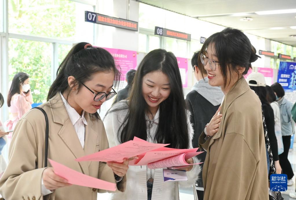 3月10日,應聘者在現場(chǎng)了解崗位信息。