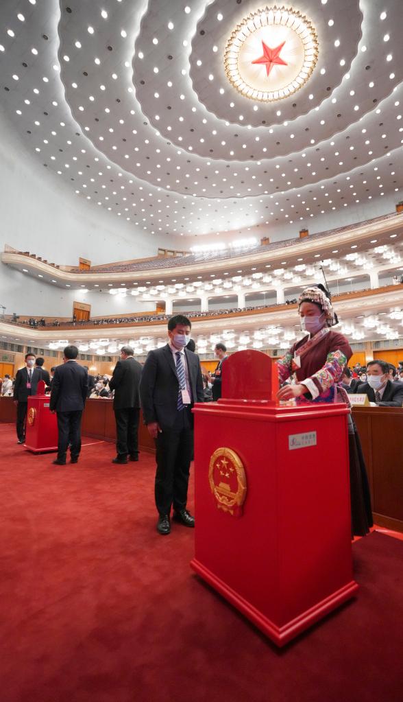 3月10日,十四屆全國人大一次會(huì )議在北京人民大會(huì )堂舉行第三次全體會(huì )議。這是代表在投票。