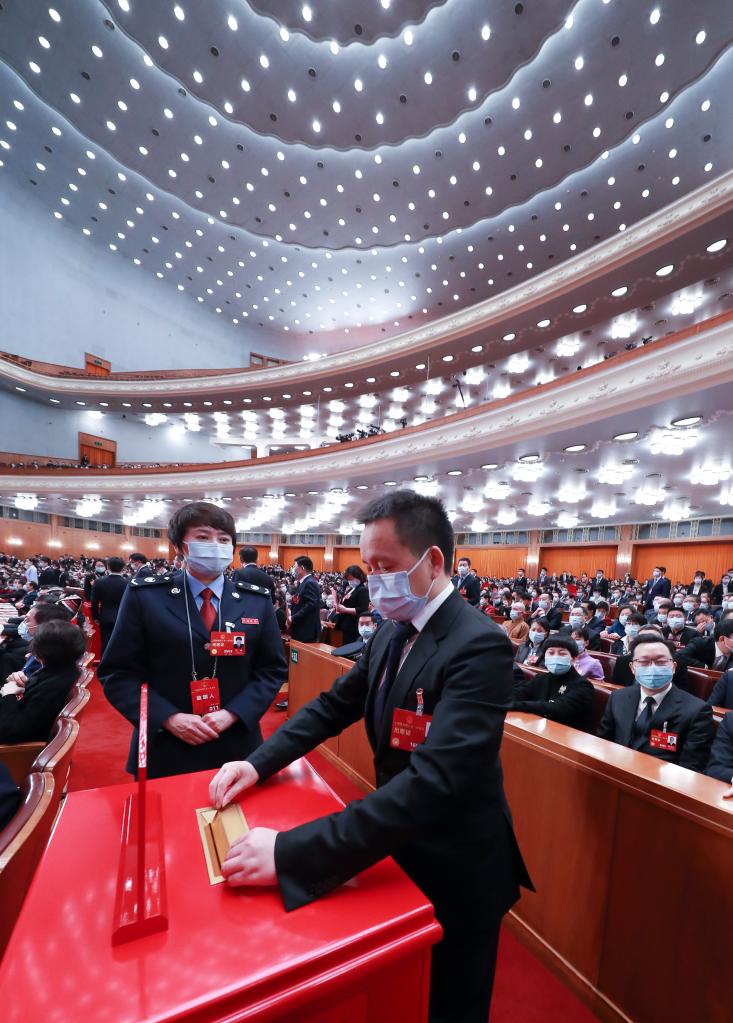 3月10日,十四屆全國人大一次會(huì )議在北京人民大會(huì )堂舉行第三次全體會(huì )議。這是代表在投票。