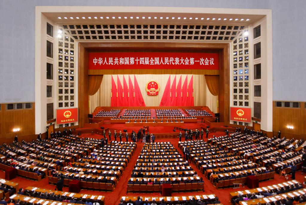 3月10日,十四屆全國人大一次會(huì )議在北京人民大會(huì )堂舉行第三次全體會(huì )議。全體會(huì )議各項議程進(jìn)行完畢后,舉行中華人民共和國第十四屆全國人民代表大會(huì )第一次會(huì )議憲法宣誓儀式。