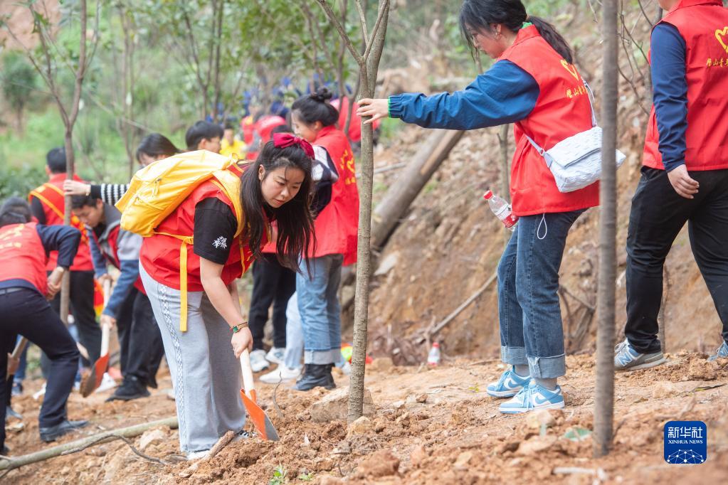 3月10日,在位于重慶市璧山區八塘鎮陽(yáng)龍村的縉云山腳下,“蝴蝶結女孩”吳樸慧(左前)在植樹(shù)??N云山山火撲救過(guò)程中,吳樸慧駕駛越野摩托車(chē),載著(zhù)上百斤的滅火物資,輾轉多個(gè)火場(chǎng),頭盔上的紅色蝴蝶結成為她獨特的標志。