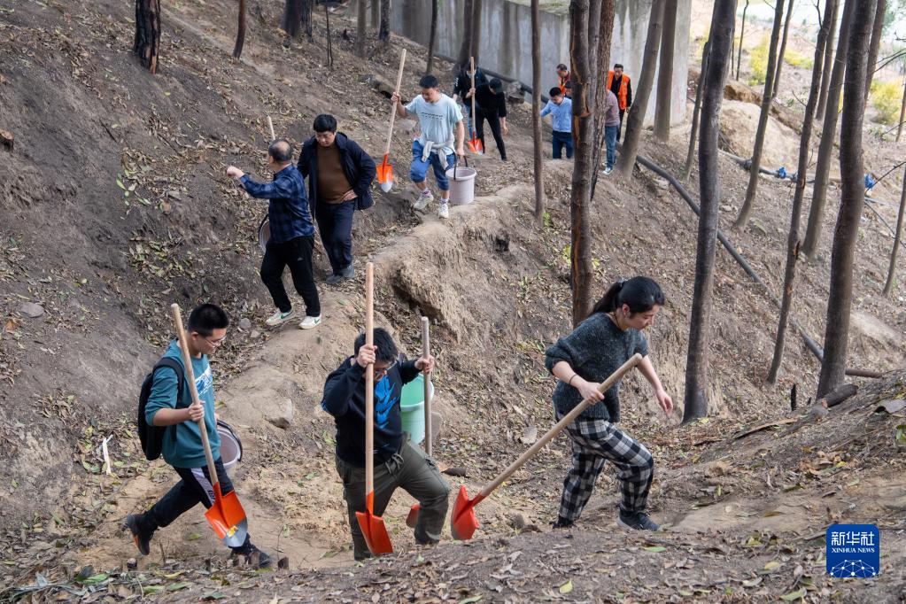3月9日,在位于重慶市北碚區的縉云山防火主隔離帶附近,社會(huì )各界人士前往植樹(shù)點(diǎn)進(jìn)行植樹(shù)活動(dòng)。