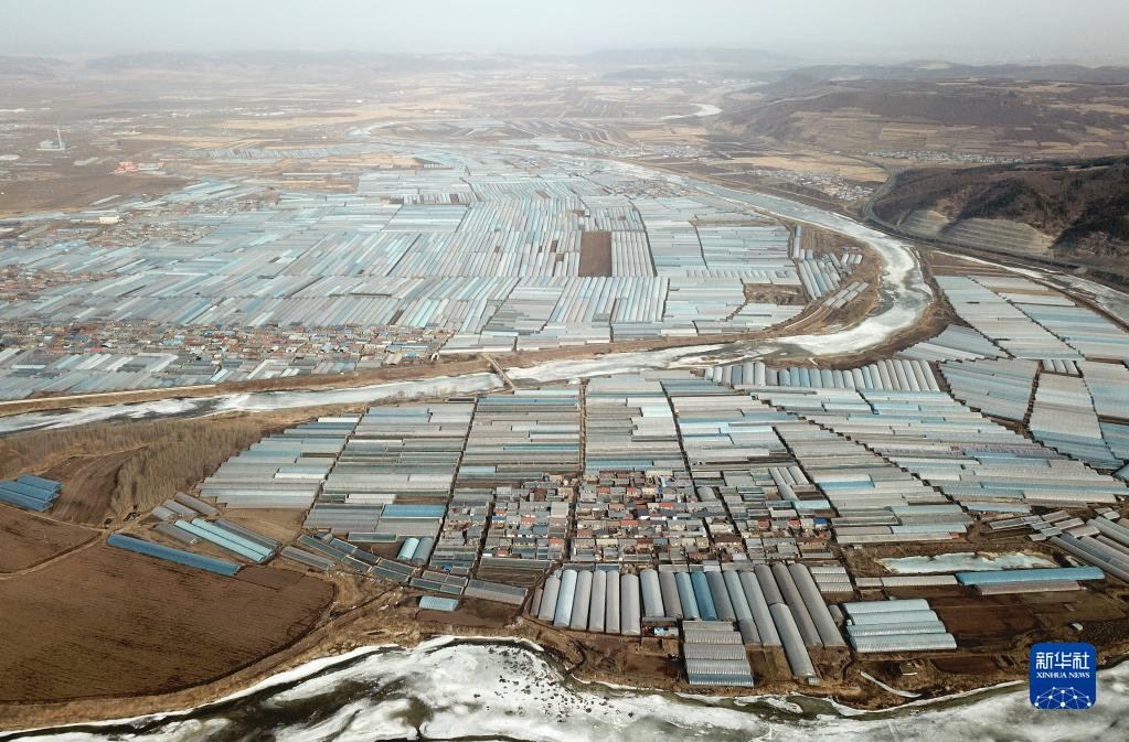 這是位于黑龍江省寧安市牡丹江畔的果蔬棚室(3月11日攝,無(wú)人機照片)。