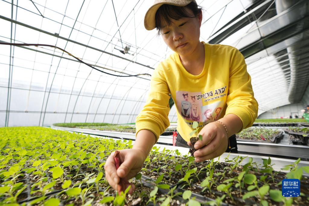 3月10日,在位于黑龍江省寧安市的寧安農場(chǎng)現代農業(yè)示范園棚室內,工作人員在忙碌。