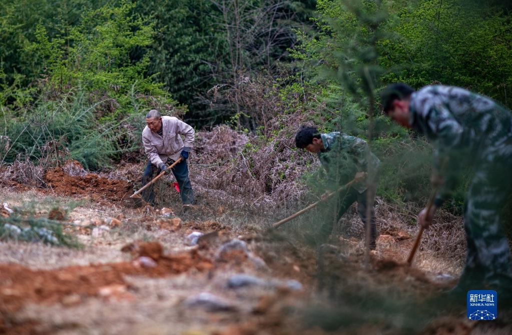 3月12日,云南省曲靖市陸良縣龍海鄉的干部群眾在花木山林場(chǎng)植樹(shù)。