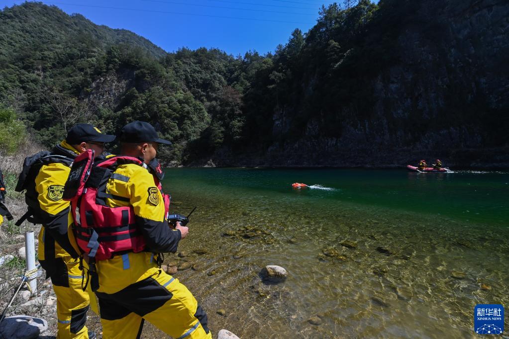 3月14日,在杭州市臨安區的昌化溪,狼行公益應急救援隊的志愿者隊員們在進(jìn)行水上救援培訓。