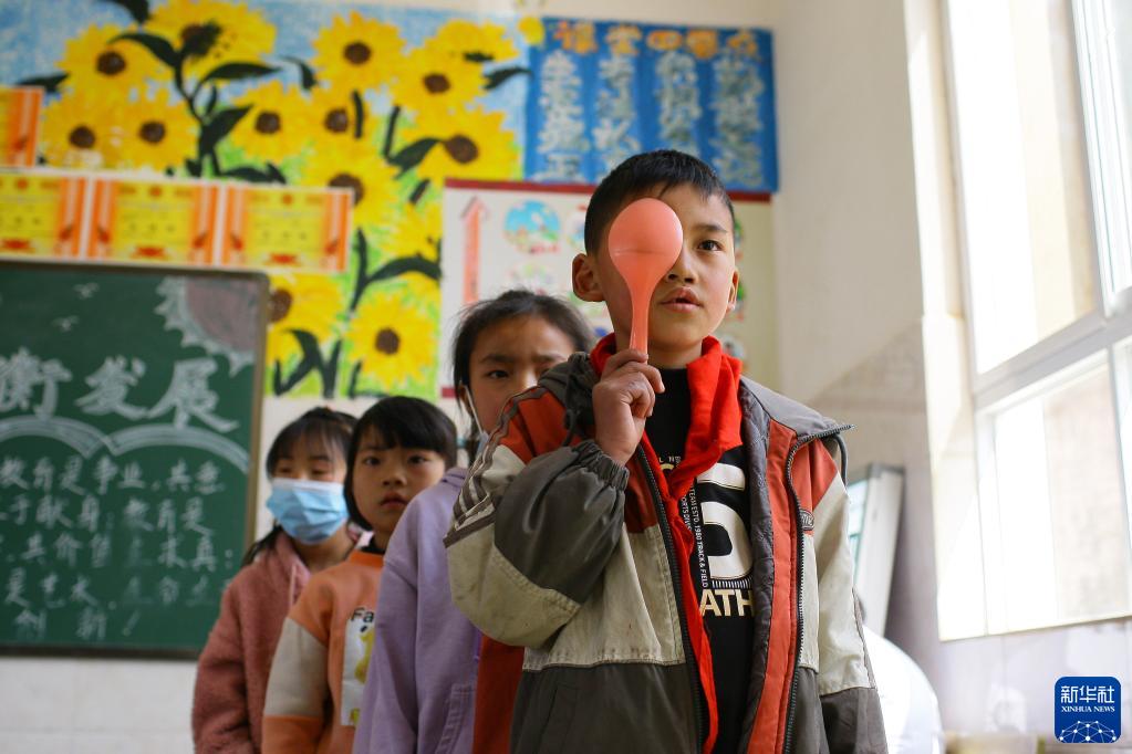 3月14日,在曲靖市沾益區白水鎮崗路小學(xué),學(xué)生進(jìn)行視力測試。