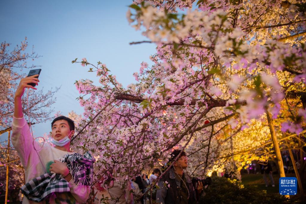 近日,湖北武漢東湖櫻園的櫻花競相綻放,吸引眾多游客前來(lái)踏青賞花,樂(lè )享春光。