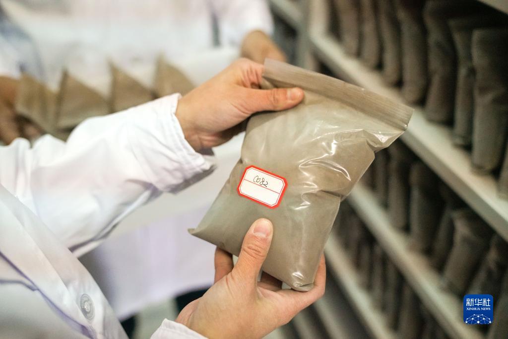 3月14日,在北大荒集團建設農場(chǎng)有限公司農業(yè)科技園區土樣室,孫凡紅在整理土壤樣品。