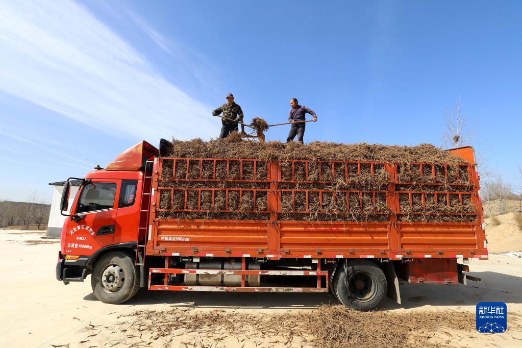 3月15日,在河北省石家莊市行唐縣上閆莊鄉中藥材種植基地,工作人員將黃芩裝車(chē)準備銷(xiāo)售。